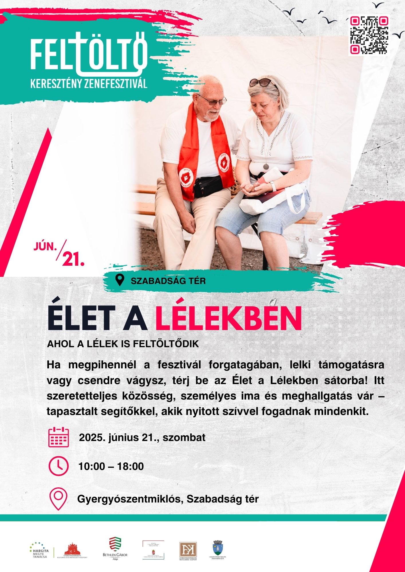 Sátrak: Szabadság Zóna, Élet a Lélekben, Kávézz a papoddal, Életvédő, Imasátor, Bónusz Pásztor, Szülőmegőrző, Játssz szabadon, Társasjáték, Ifi-sátor, Örmény sátor.